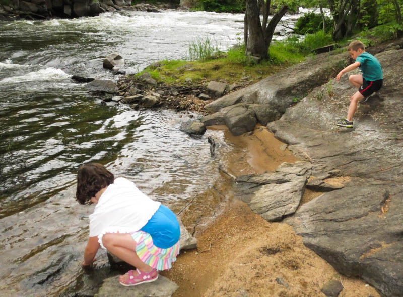 | We then came back to the park entrance and spent time sitting by the water there. It was really shallow, but rocky with lots of rapids. |